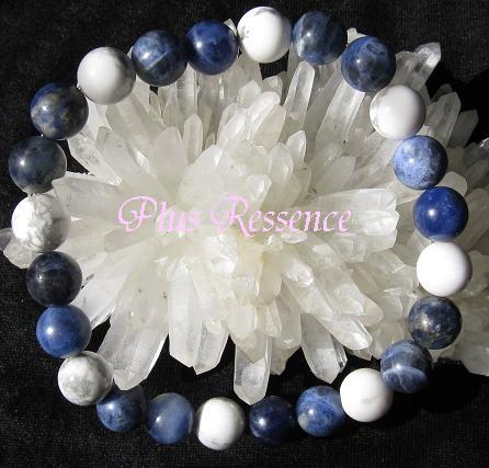 まるで小さな地球のように見えるソーダライトとハウライトのブレスレットです。