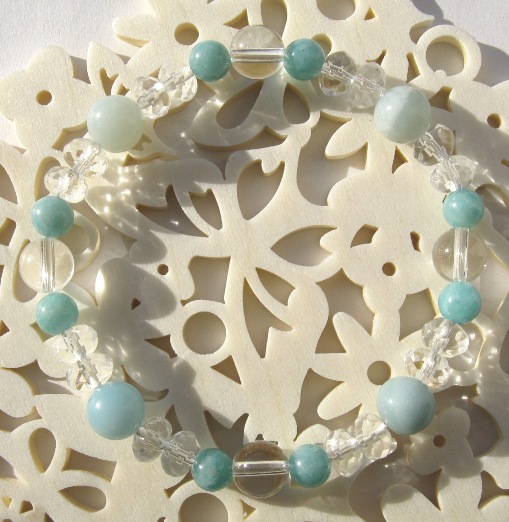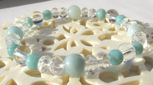 濃淡のアマゾナイトと水晶で優しい風合いに仕上がりました。